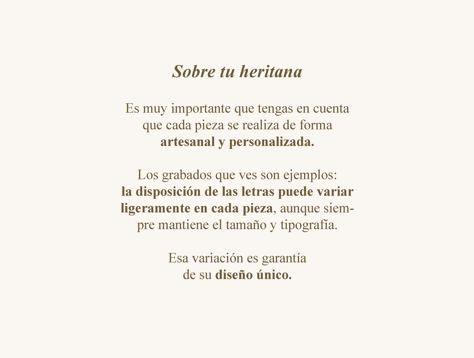 · Cinta de latón tratado grabada a mano con el valor elegido.